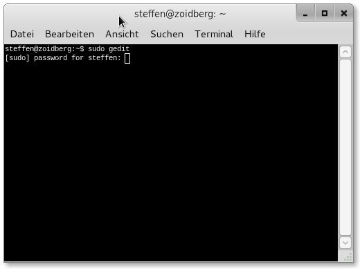 Nachdem das installiert ist kann man im Terminal auf jeden Fall Gedit (Ein Texteditor, man kann auch einen anderen nutzen.) als Root öffnen.